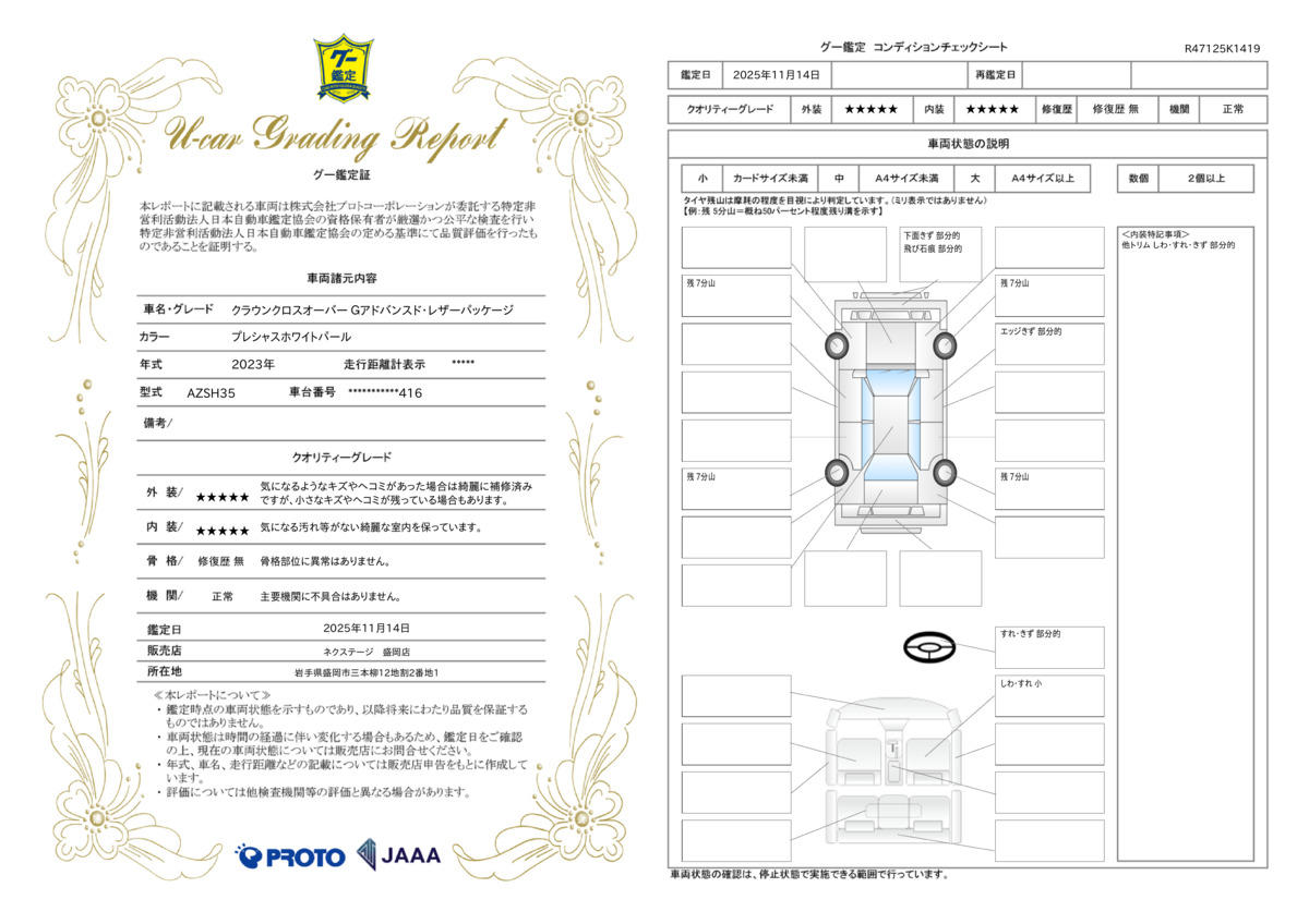 [保証付]:3ヶ月・3000km ※いずれか早い時期が保証適用の条件となります。 ●期間中は何度でも使用可 ※累積上限金額あり ●全国の店舗で対応可 ●最長10年の有料保証もご用意。充実の保証範囲(401項目)1・2・3・10年からお選びいただけます※車両により加入条件が異なります |