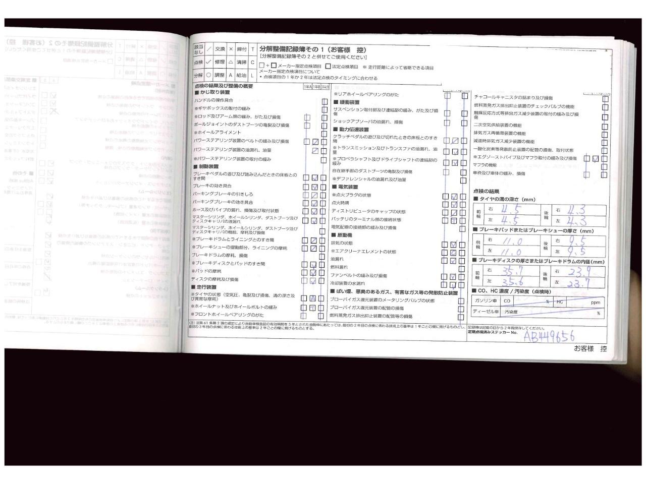 | エンジンオイル・エンジンオイルフィルター・バッテリー・ブレーキフルード・エアコンフィルター・フロントワイパーゴム・クーラントブースター・エアフィルター・エンジンインジェクタークリーナーを新品交換!!! |