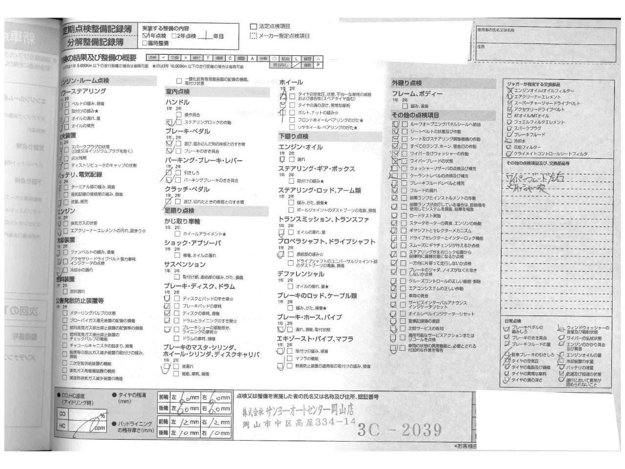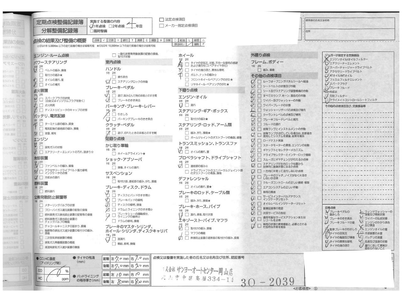 | エンジンオイル・エンジンオイルフィルター・バッテリー・ブレーキフルード・エアコンフィルター・フロントワイパーゴム・クーラントブースター・エアフィルター・エンジンインジェクタークリーナーを新品交換!!! |