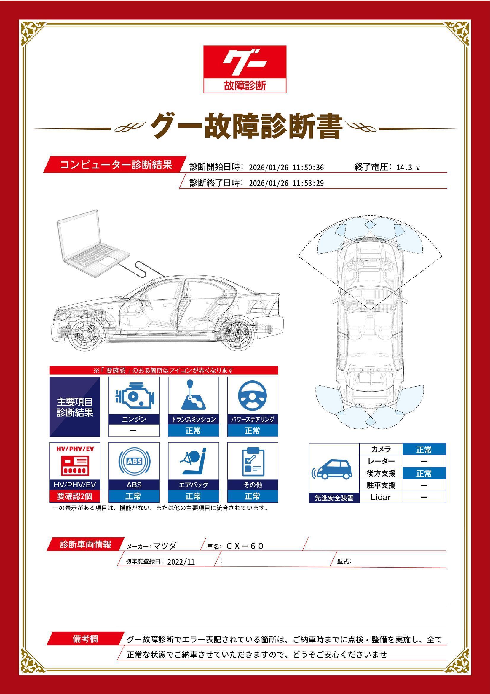 | 保証修理受付先 | 弊社へのご入庫および修理着工を前提としておりますが、諸事情によりご入庫が難しい場合は、メーカー系ディーラー、および提携工場にて修理対応となります。詳しくはスタッフまでお気軽にお問い合わせください。 |