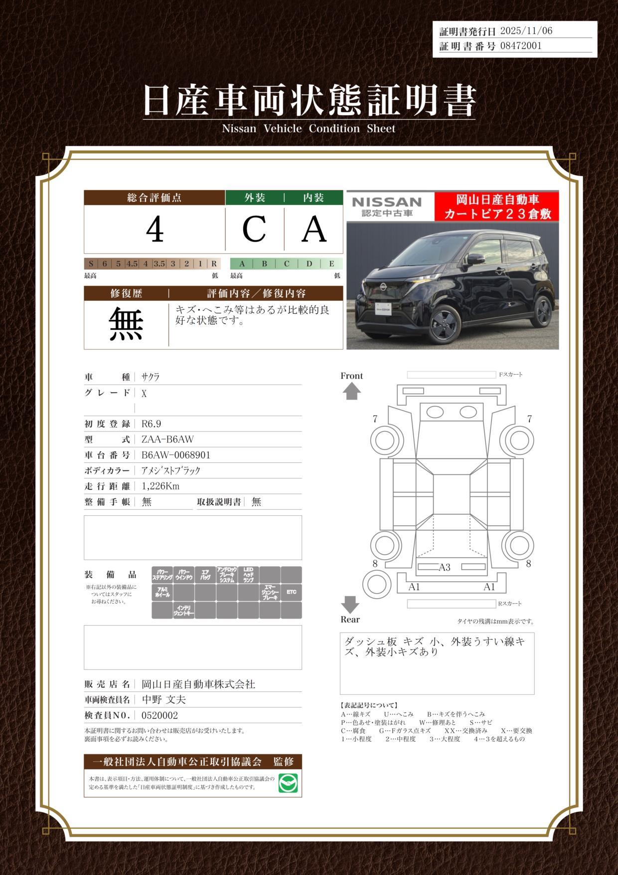 [保証付]:12ヶ月・走行無制限 購入後の保証付きです☆走行距離無制限で対象パーツを1年間無料保証☆万が一の時は、全国の日産サービス工場で安心サービスが受けられます!!遠方の方でもお気軽にご相談ください! |