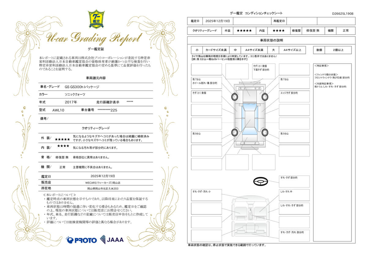 納車後1ヶ月・1000km以内は36機構・343項目を保証いたします。詳しくは販売店までお問い合わせ下さい。