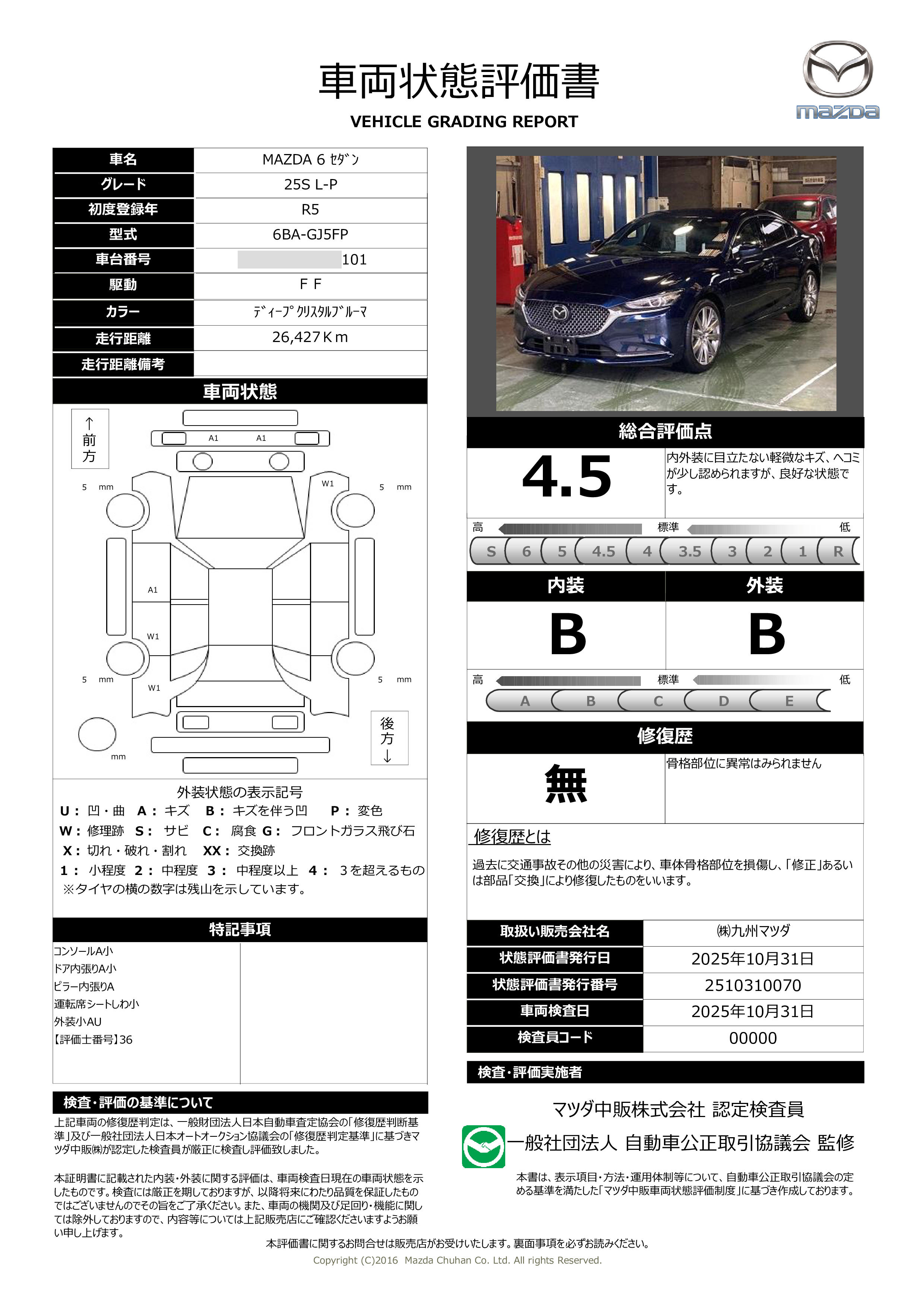 九州マツダでは「本体価格35万円以上」の中古車をご購入のお客様には全車保証期間として納車から1年・走行距離無制限の保証をお付けしております。詳しくはスタッフまでお問い合わせください。