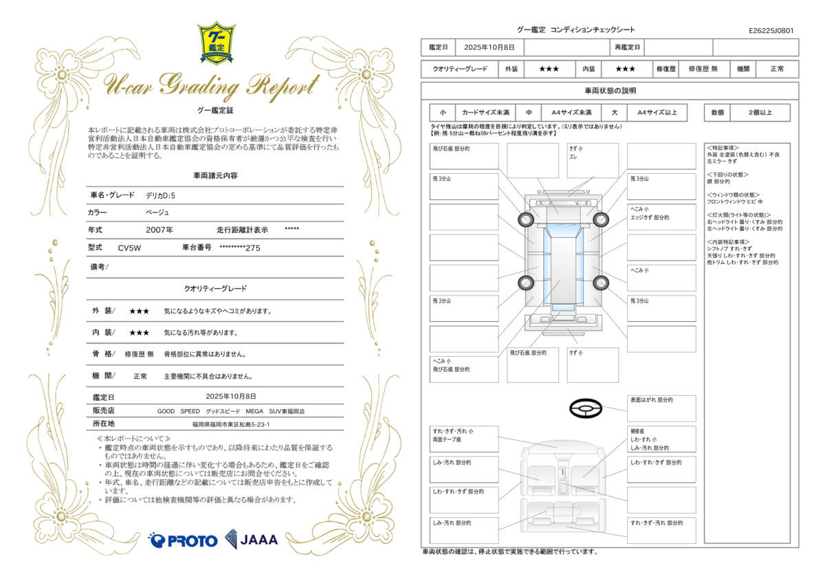 [保証付]:1ヶ月・1000km ※いずれか早い時期が保証適用の条件となります。 業界高水準、最長保証期間はなんと15年。保証項目406部位。任意による1年毎の更新が可能な新しいアフターサービス「GOOD SPEEDオリジナル プレミアムワランティー」をご用意させて頂いております。 |