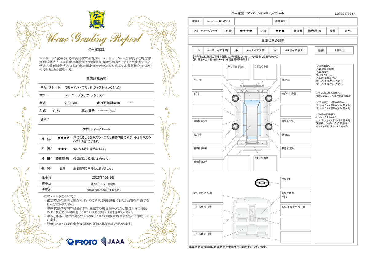 保証項目 | 3ヶ月・3000km以内ならエンジン、トランスミッション、ハイブリッド、ステアリング、ブレーキの各機構における主要項目を無償修理(または交換)いたします。 |