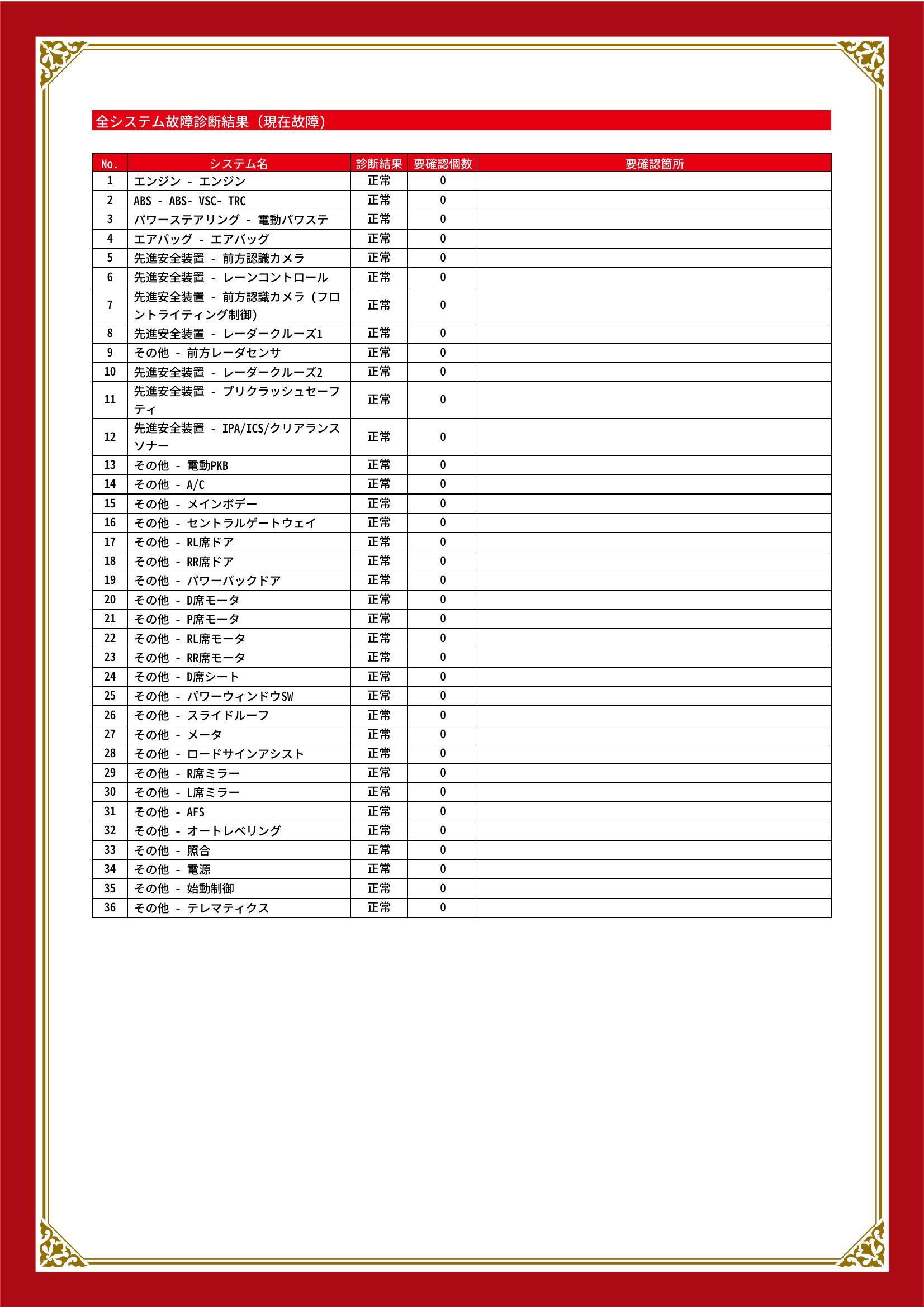 保証項目 | 3ヶ月・3000km以内ならエンジン、トランスミッション、ハイブリッド、ステアリング、ブレーキの各機構における主要項目を無償修理(または交換)いたします。 |