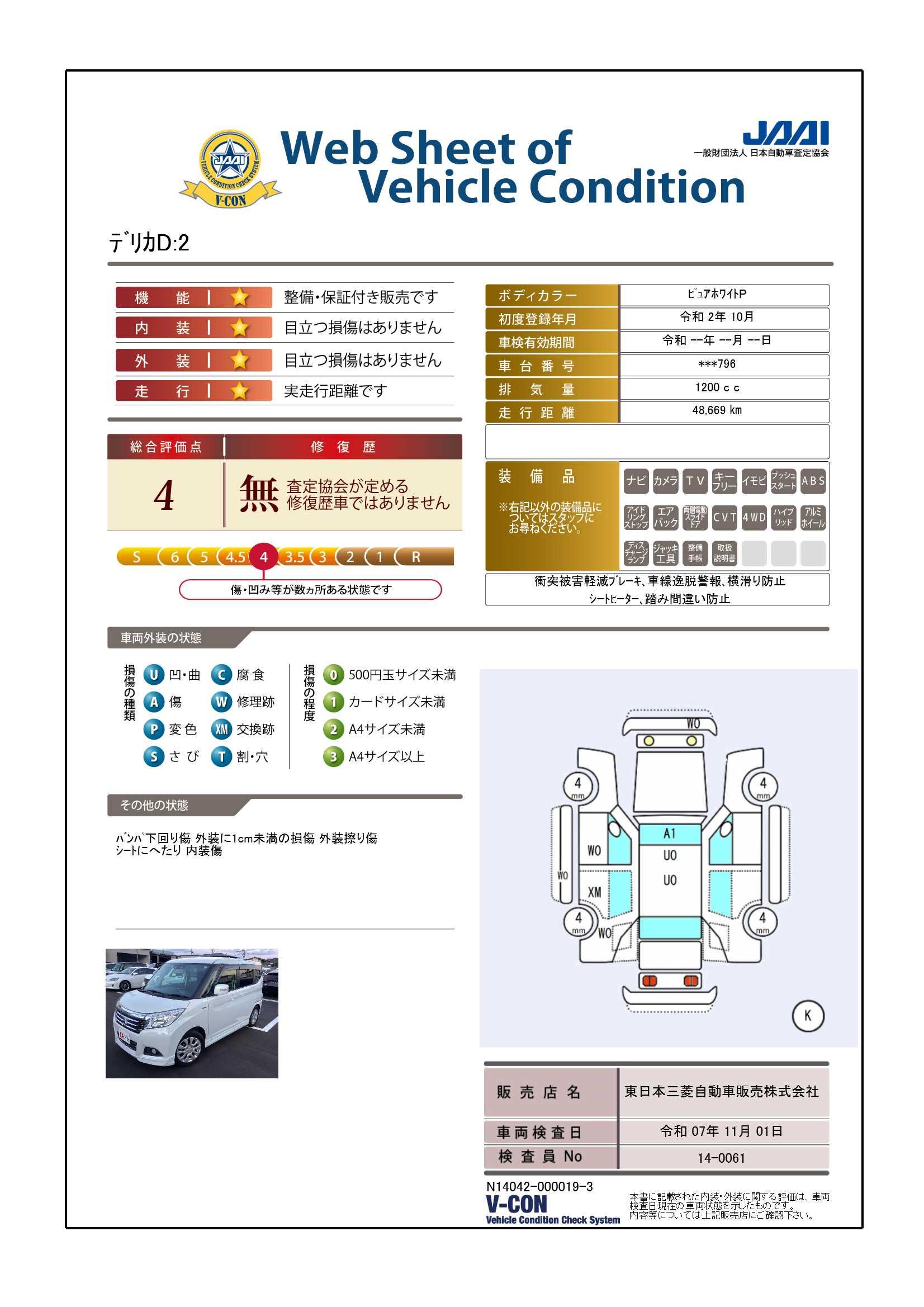 1年走行距離無制限保証全国の三菱自動車ディーラーで使える、1年間の無料保証付きです。(消耗品、油脂類、ボデー内外装部品は対象外になります)さらに有料で2年間の延長が可能です。