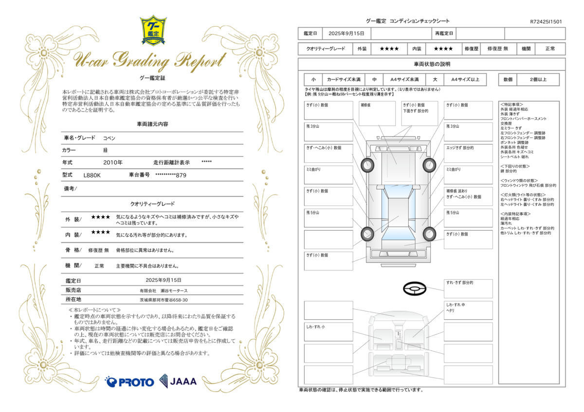 メーカー特別保証内容(エンジン、ミッション、ブレーキ重要保安部品)に準拠