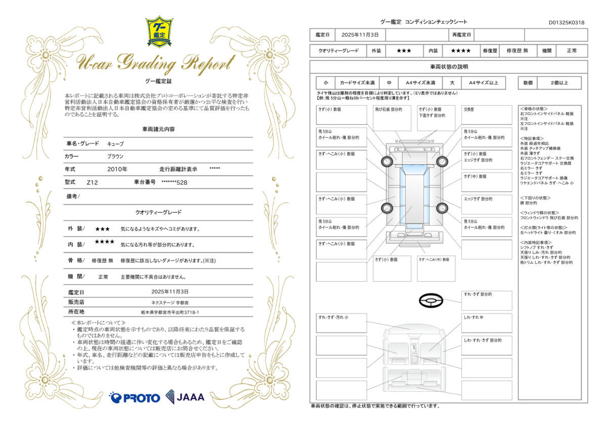 弊社では、全車『修復歴なし』のお車のみ取り扱っております。専任バイヤーによる厳選した仕入れの後、入庫後の車両チェックを行い、ネクステージが認定した高品質な中古車をご提供しております。 15