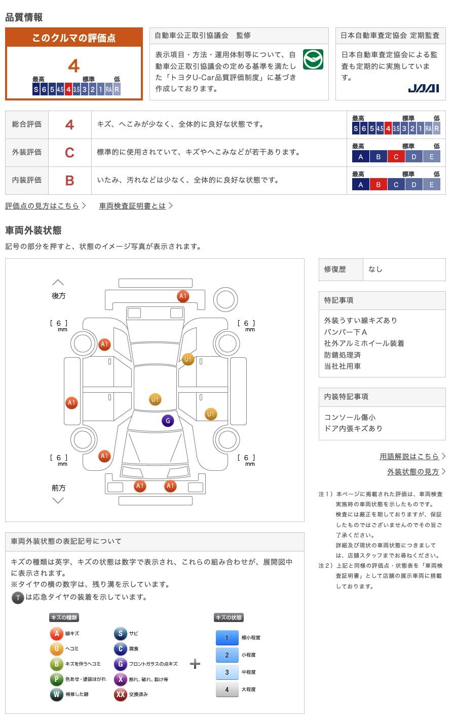 • また、修復歴・法定整備・保証の有無ならびに詳細内容につきましても、必ず各販売店にご確認いただきますようお願いいたします。