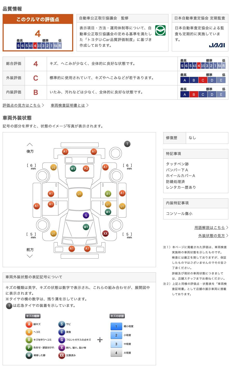 • また、修復歴・法定整備・保証の有無ならびに詳細内容につきましても、必ず各販売店にご確認いただきますようお願いいたします。