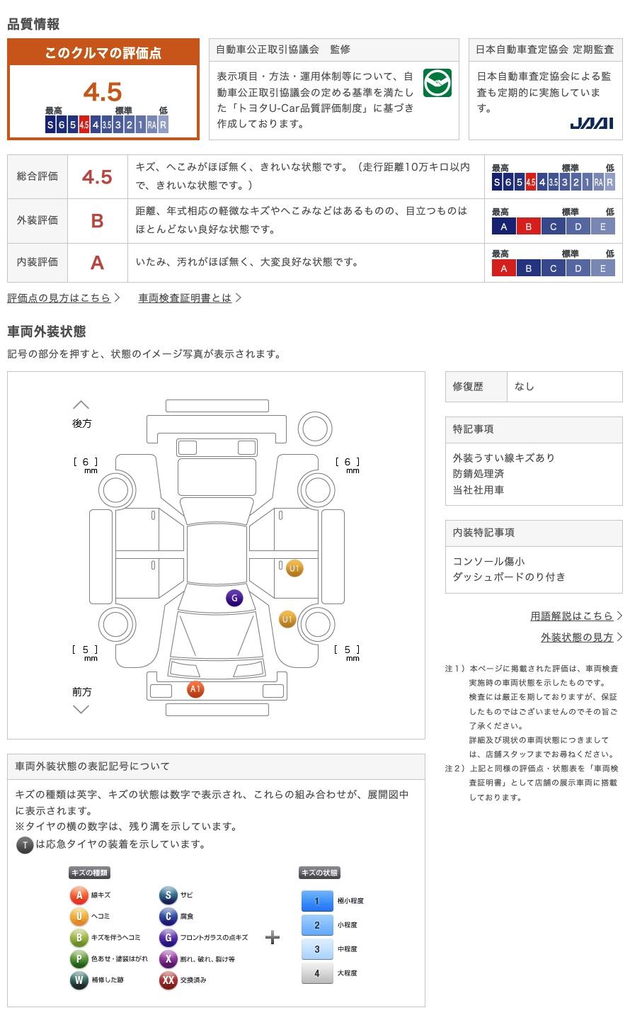 • また、修復歴・法定整備・保証の有無ならびに詳細内容につきましても、必ず各販売店にご確認いただきますようお願いいたします。