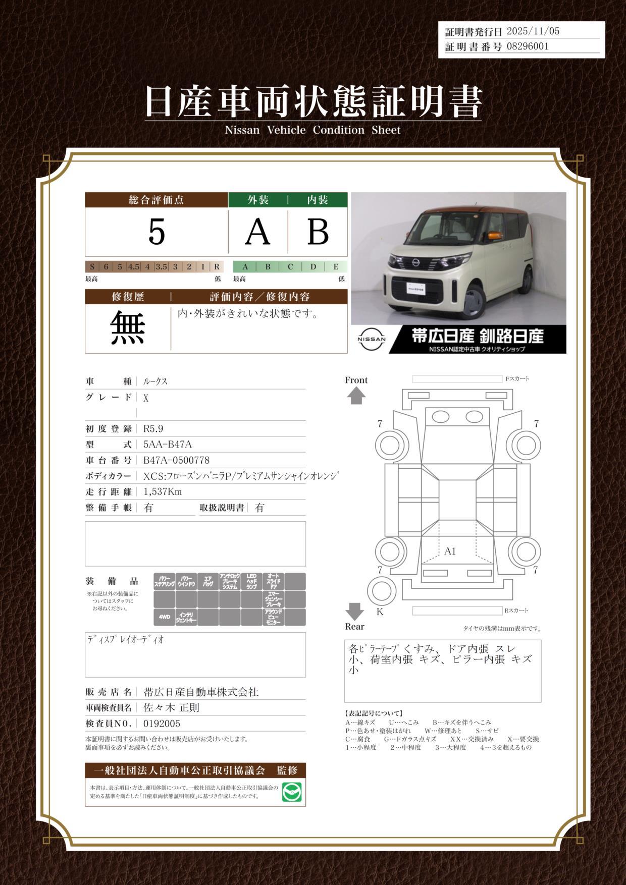 • また、修復歴・法定整備・保証の有無ならびに詳細内容につきましても、必ず各販売店にご確認いただきますようお願いいたします。