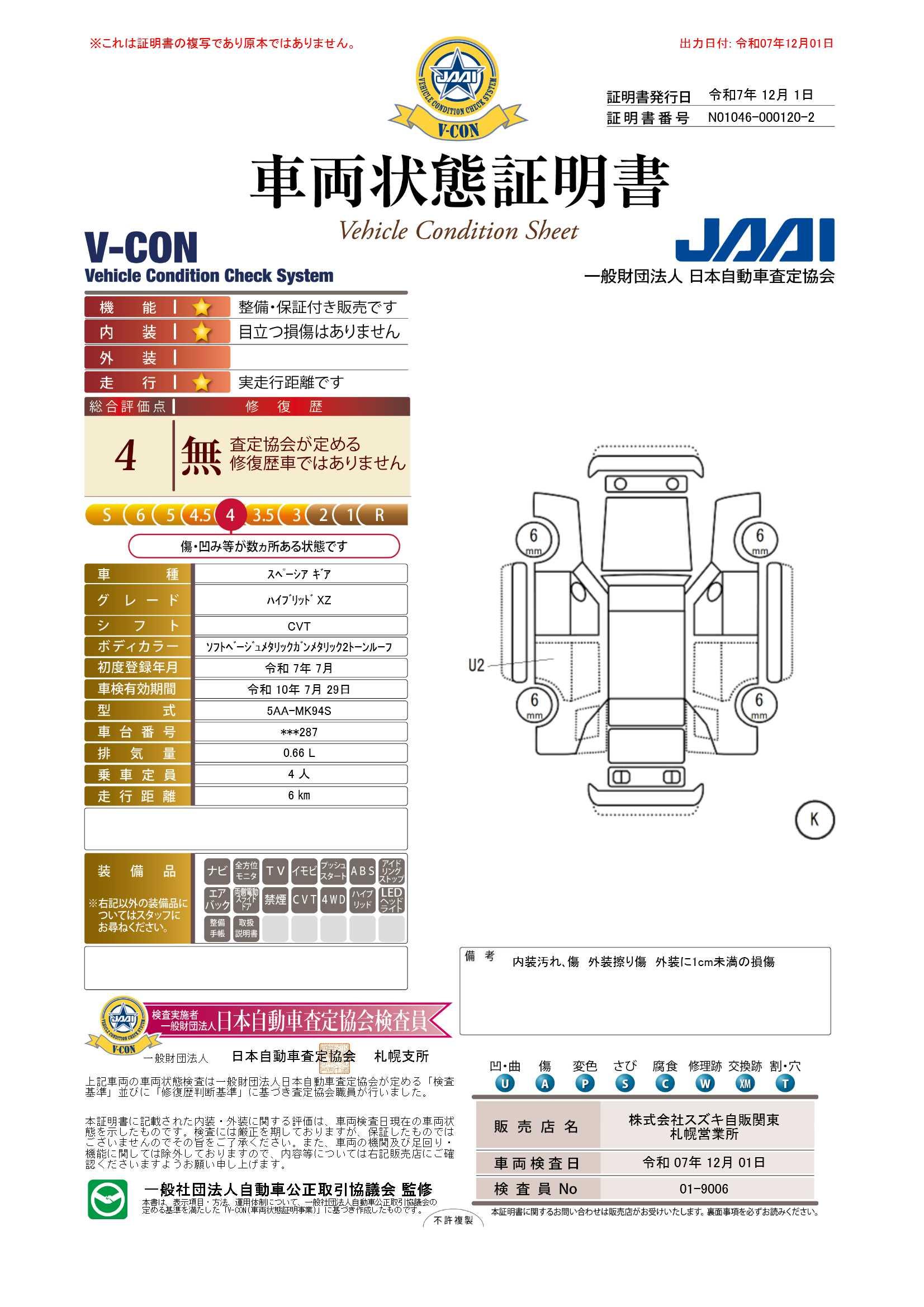 | 保証について | [保証付]:2028(令和10)年7月まで・60000km ※いずれか早い時期が保証適用の条件となります。 |