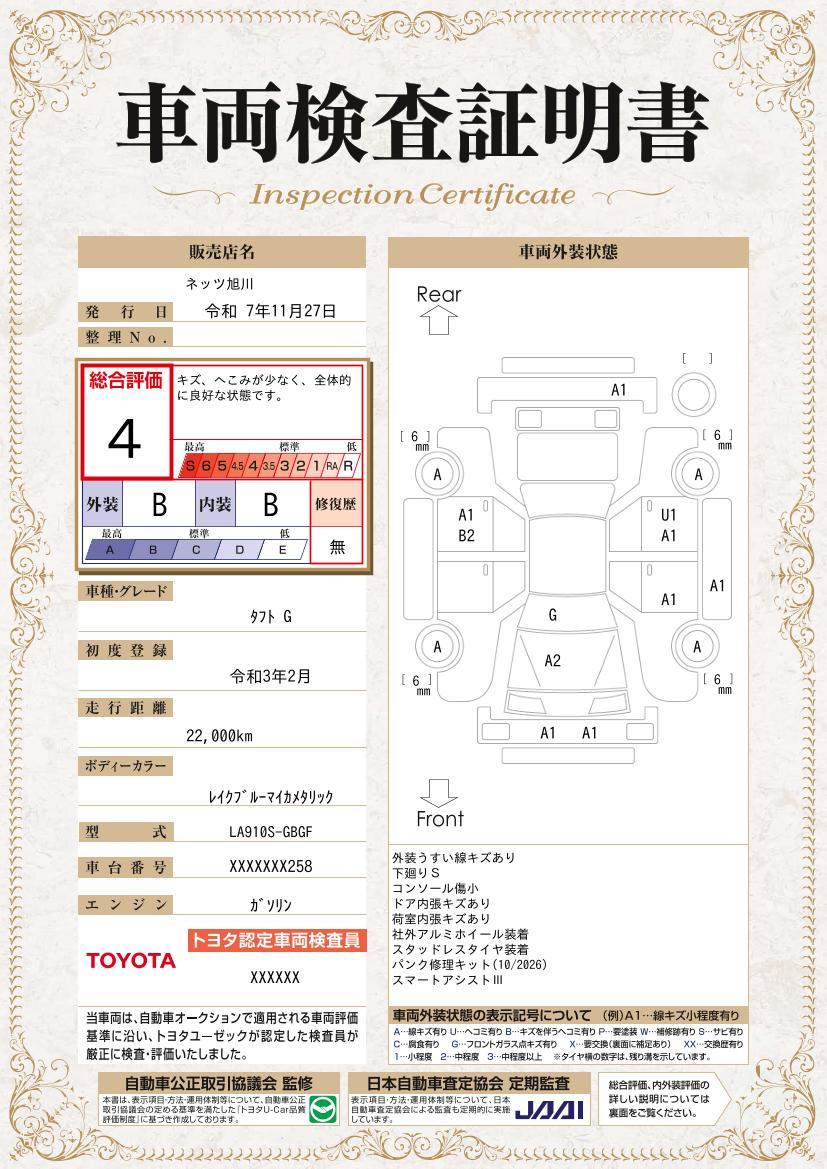 タフト G 4WD ミュージックプレイヤー接続可 バックカメラ 0300526A20251205T003 20