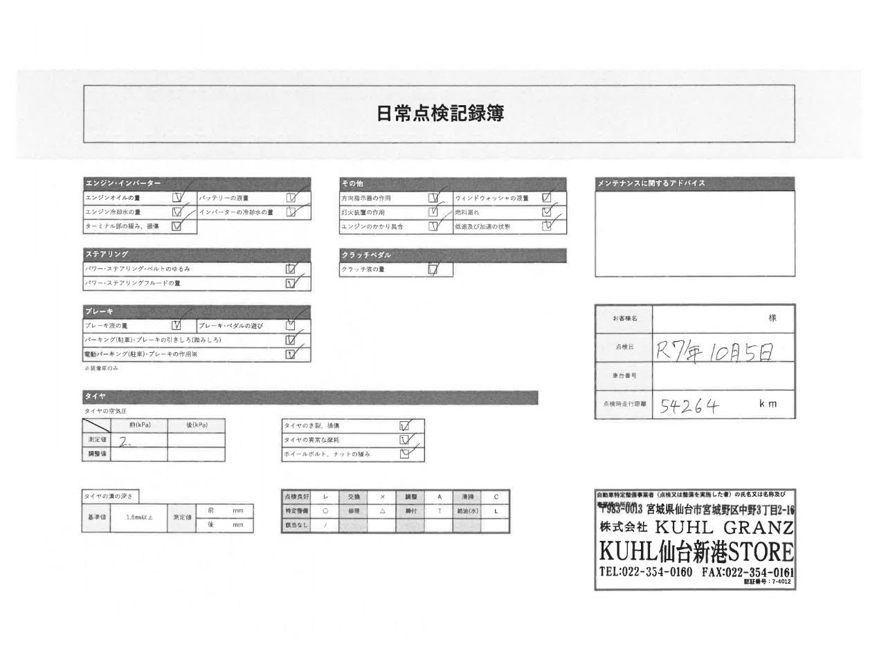 | 修理回数・上限金額 | KUHLオリジナル保証プランもご用意しております。車種、年式、走行距離に合わせた安心の保証プランを1年or2年からお選びいただけます。大切な愛車を長く楽しむ為に、是非ご検討ください。 |