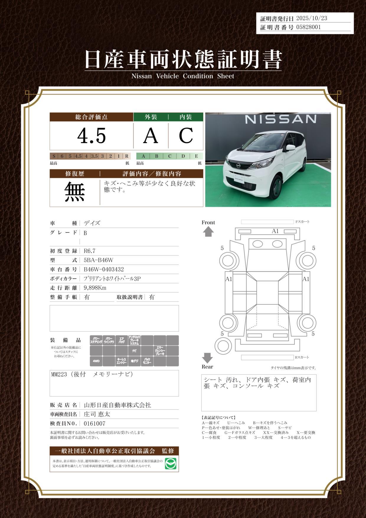 • また、修復歴・法定整備・保証の有無ならびに詳細内容につきましても、必ず各販売店にご確認いただきますようお願いいたします。