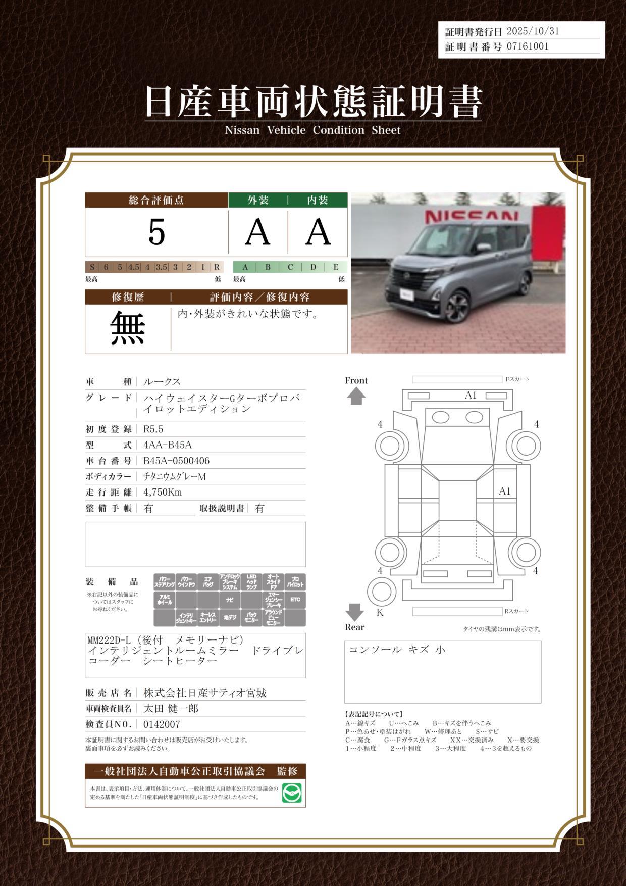 | 保証について | [保証付]:24ヶ月・走行無制限 |