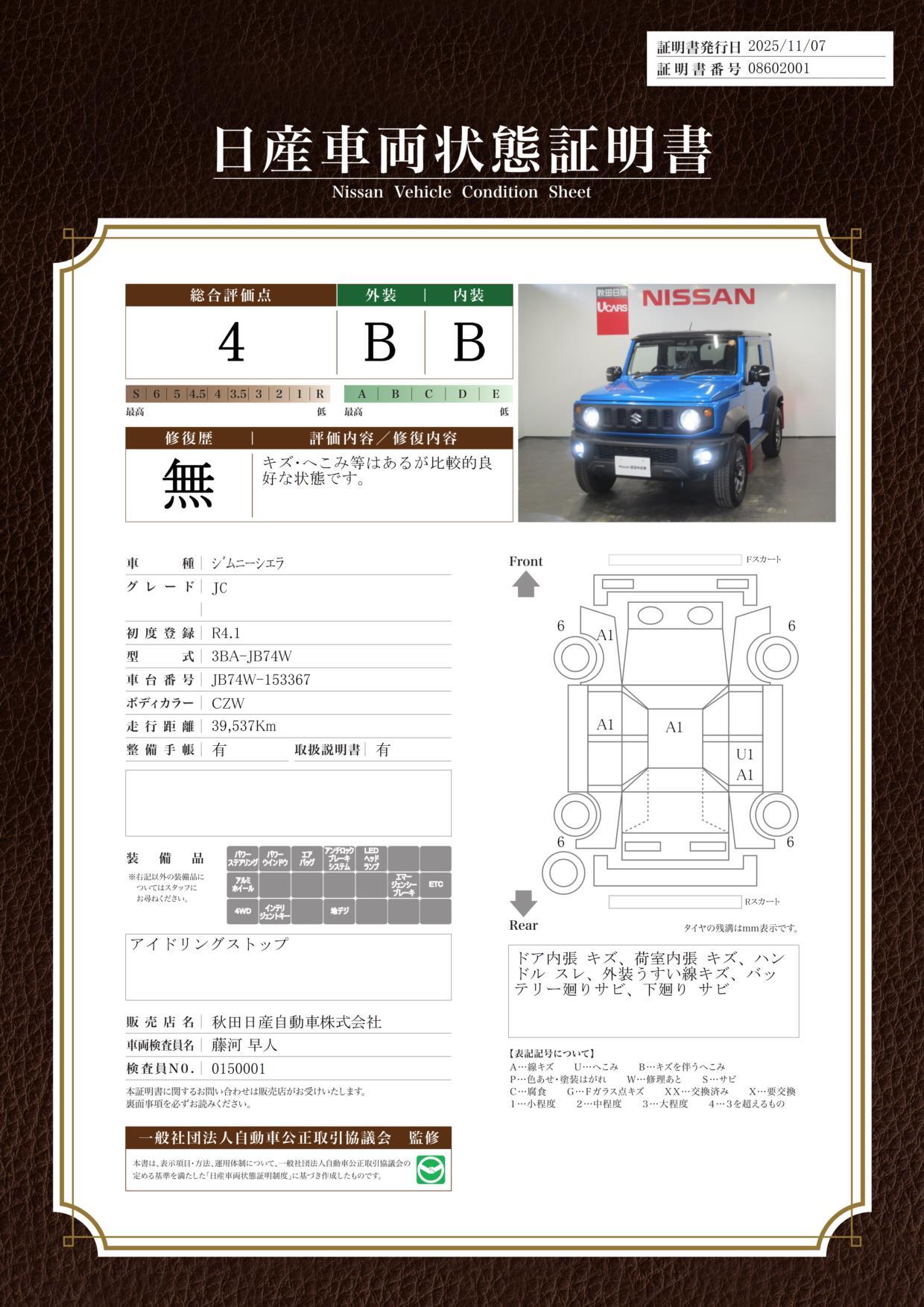 • また、修復歴・法定整備・保証の有無ならびに詳細内容につきましても、必ず各販売店にご確認いただきますようお願いいたします。