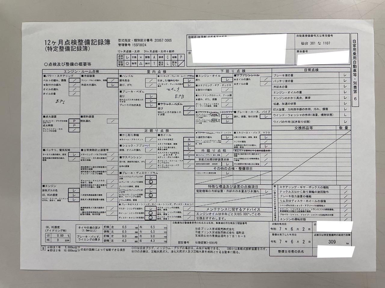 • 点検整備記録簿あり