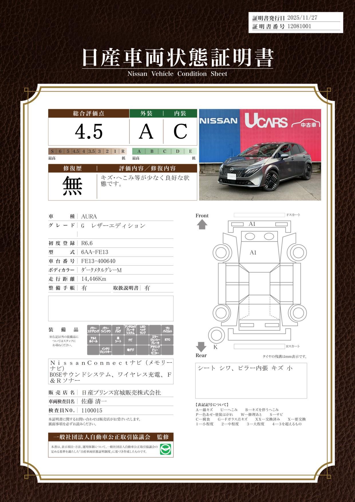 [保証付]:24ヶ月・走行無制限 2年保証付(期間中走行距離無制限)全国の日産サービス工場にて保証が受けられるのでお出かけ時でも安心です♪ |