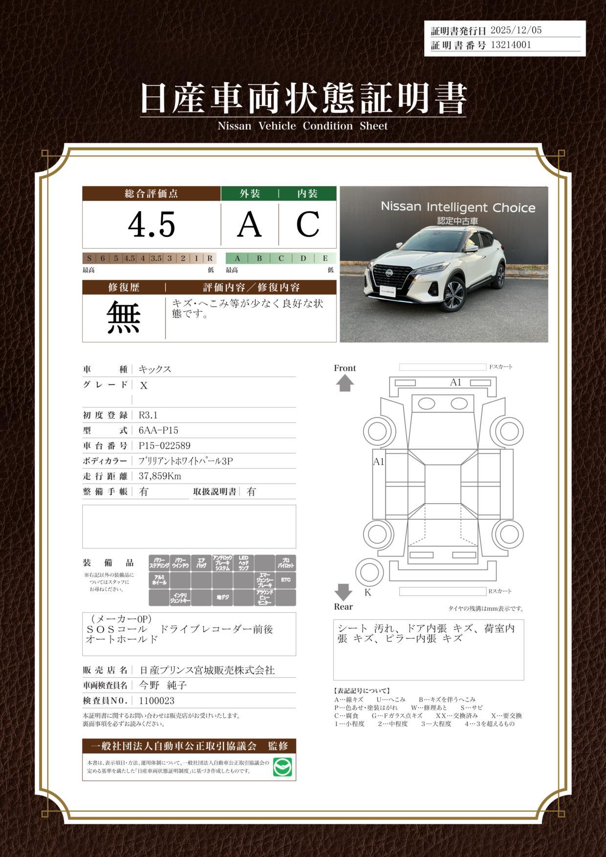 | 保証について | [保証付]:24ヶ月・走行無制限 |
