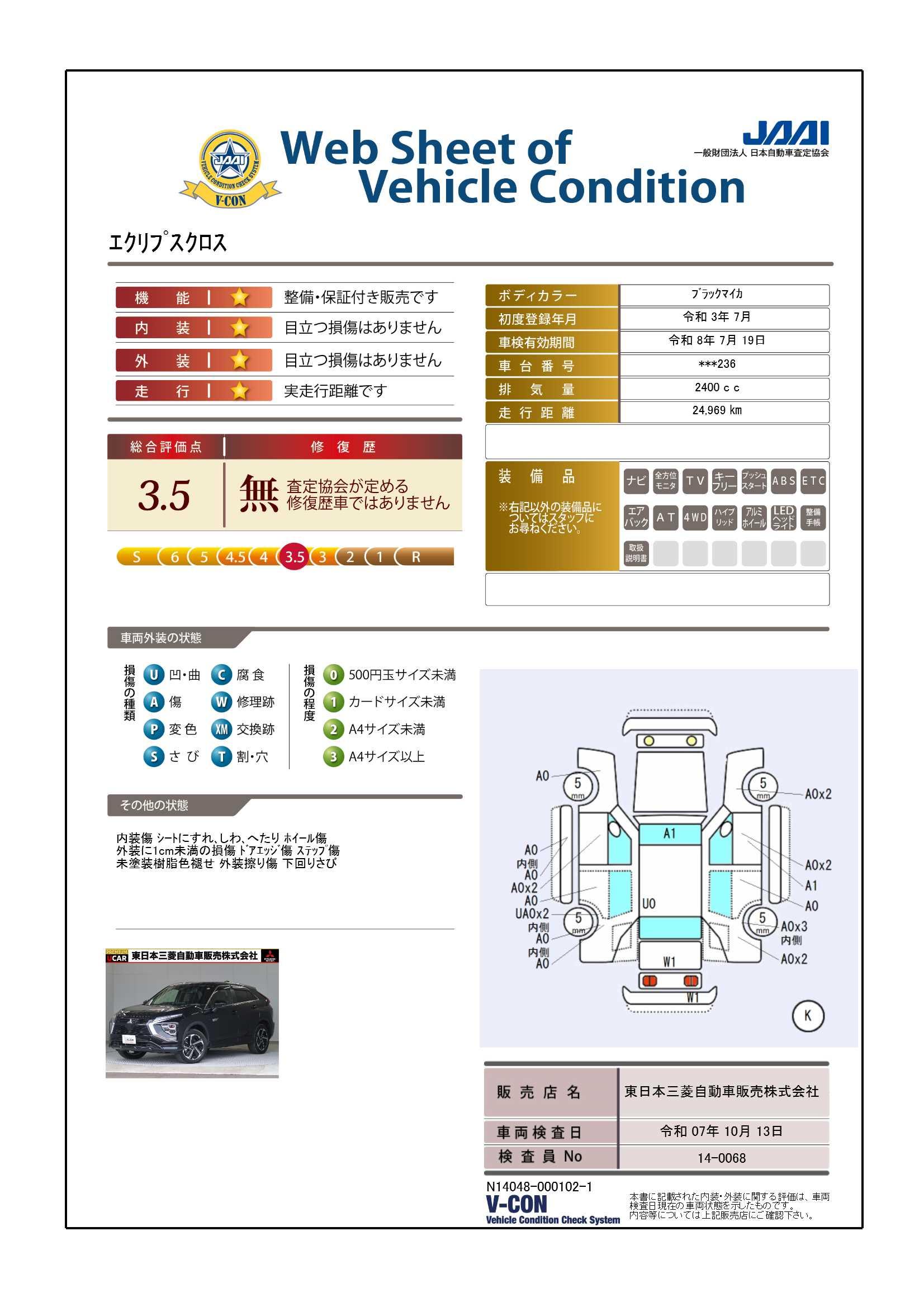 [保証付]:12ヶ月・走行無制限 1年走行距離無制限保証全国の三菱自動車ディーラーで使える、1年間の無料保証付きです。(消耗品、油脂類、ボデー内外装部品は対象外になります)さらに有料で2年間の延長が可能です。 |