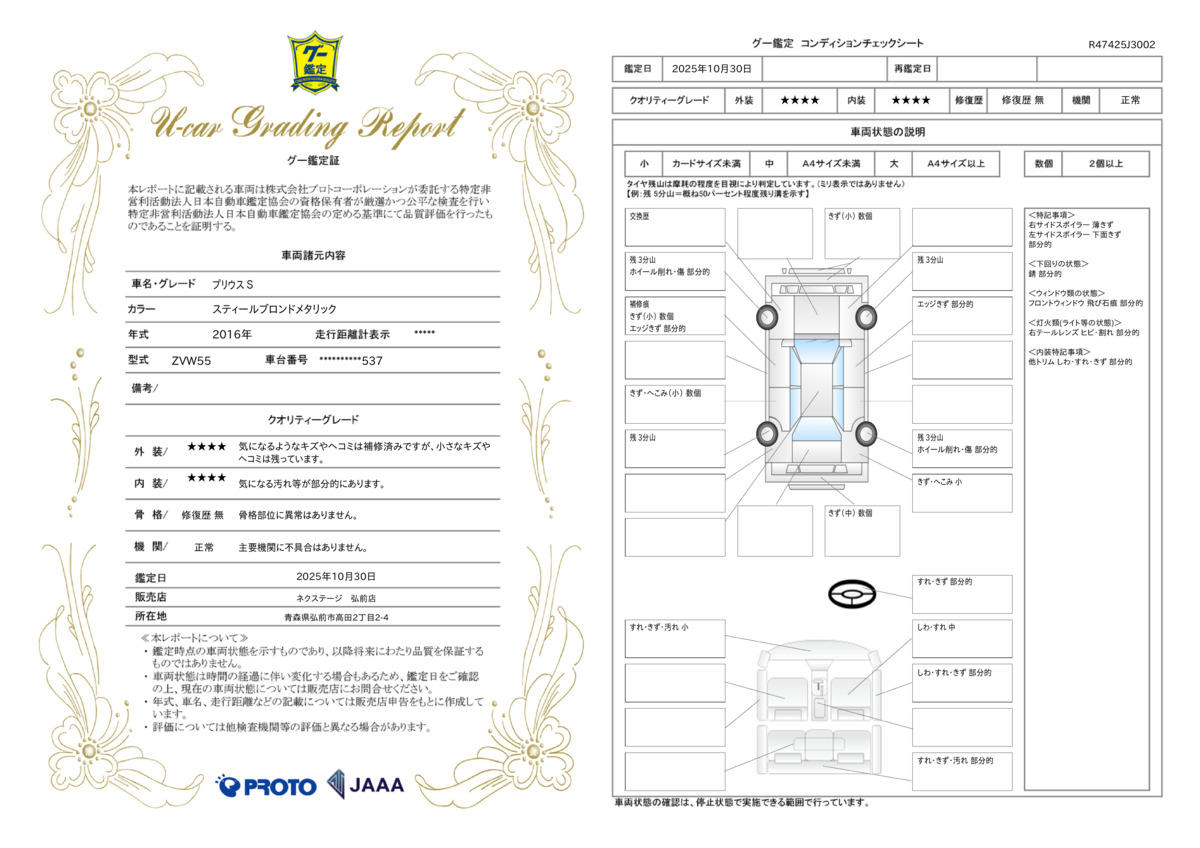 | 保証項目 | 3ヶ月・3000km以内ならエンジン、トランスミッション、ハイブリッド、ステアリング、ブレーキの各機構における主要項目を無償修理(または交換)いたします。 |