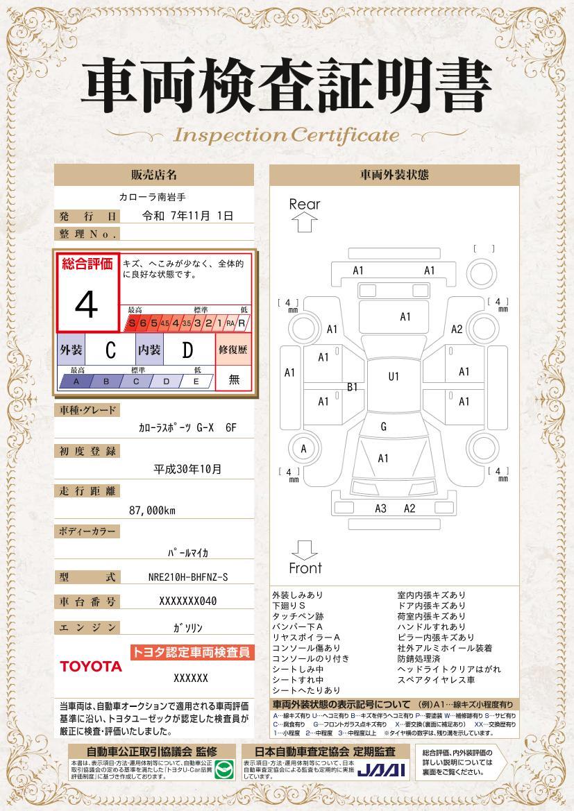 資格を有したトヨタ認定車両検査員が確認した中古車しか販売しておりません。査定内容は、お客さまにもわかりやすい点数による評価表示しています。