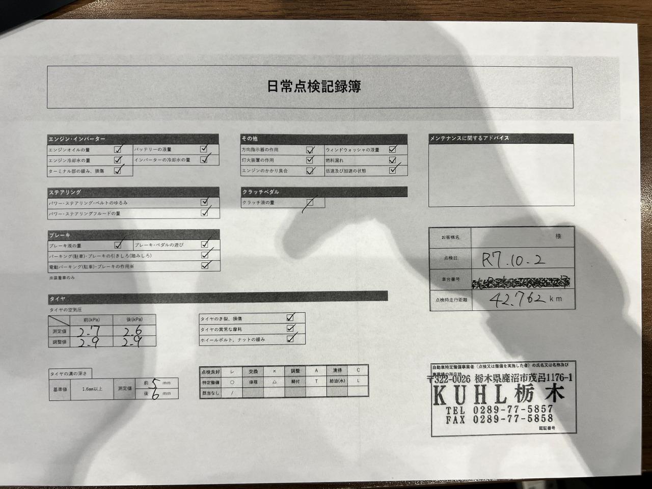 KUHL中古車メンテナンスパックです。定期点検、オイル交換などのメンテナンス作業の他、車高調整、アライメント調整等のカスタムショップならではの項目も設定しております。その他にも多数の特典がございます。 |