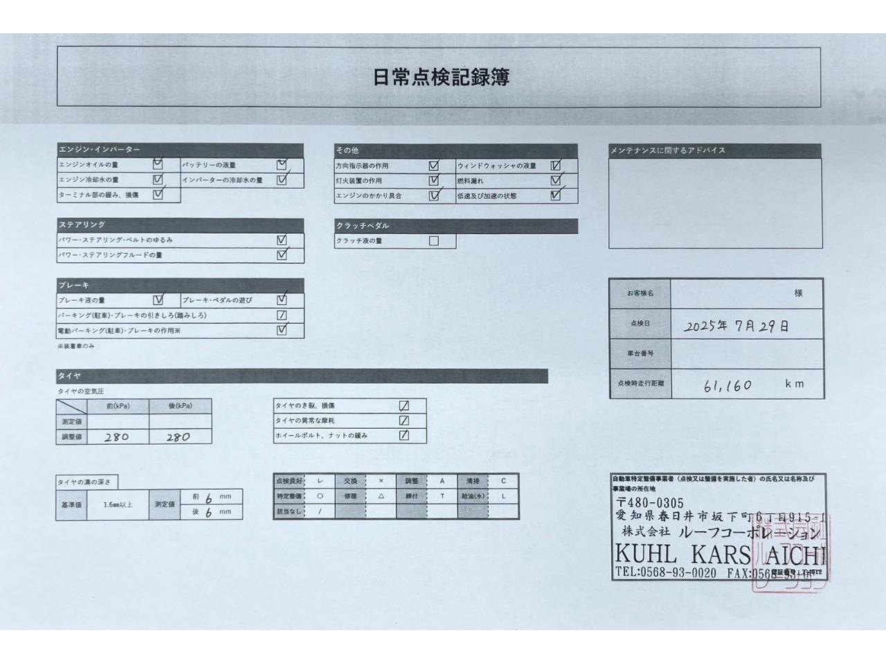 • 点検整備記録簿あり