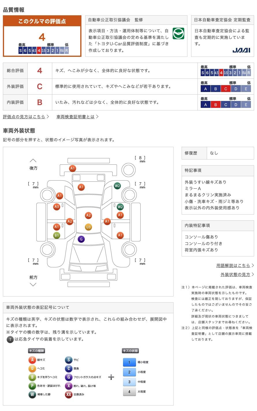 | 保証項目 | 計60項目 1年間走行距離無制限のロングラン保証付!僅かな費用で保証期間の延長が可能!最大で3年間まで保証の延長が可能!約60項目5000部品が保証対象です!もちろん全国のトヨタディーラーで保証が受けられます! |