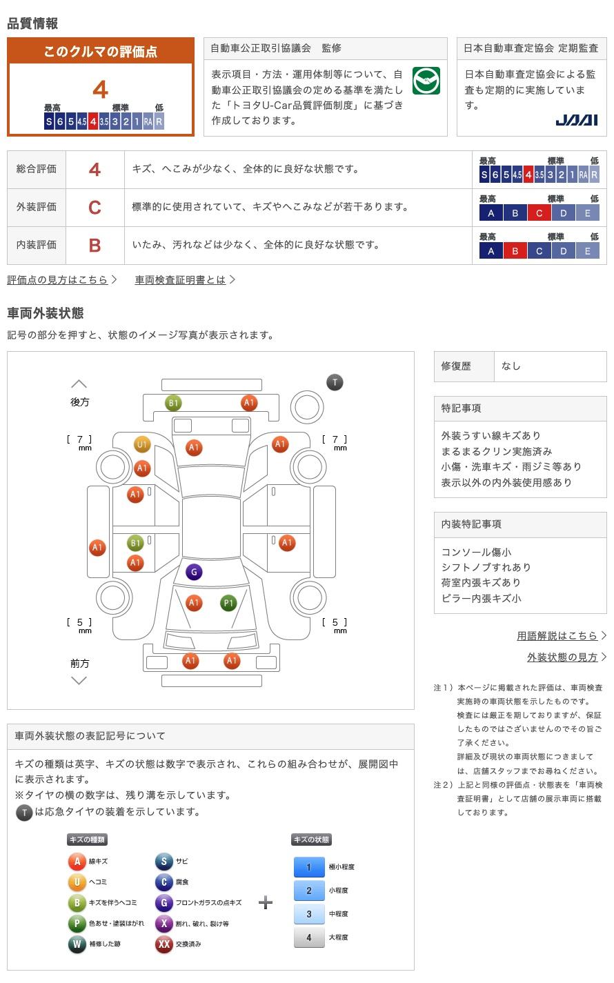 トヨタ認定車両検査員が正しく厳しく車両を検査、修復歴はもちろん小さな傷も正確にお伝えします。 74