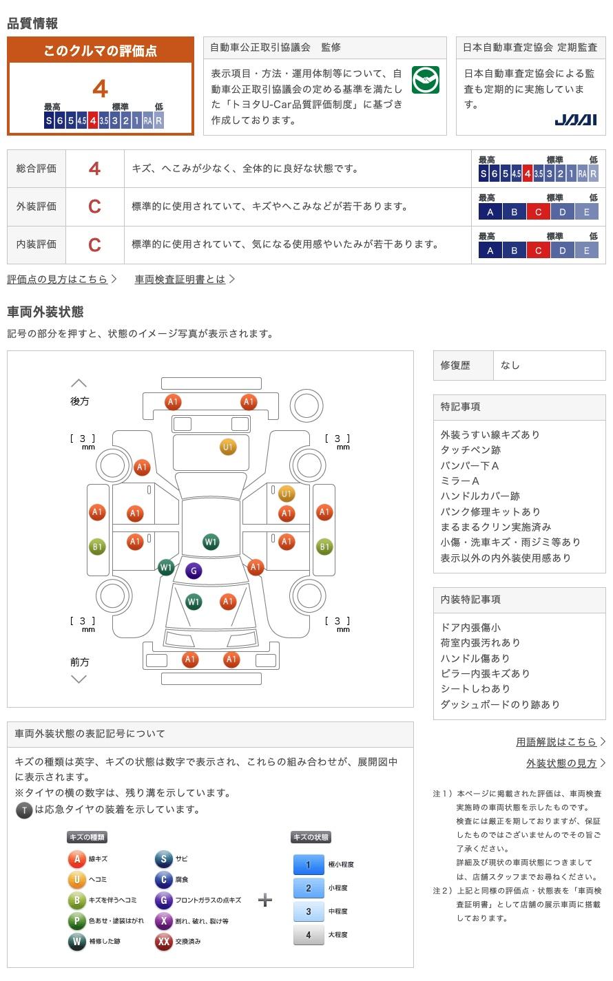 トヨタ認定車両検査員が正しく厳しく車両を検査、修復歴はもちろん小さな傷も正確にお伝えします。 74
