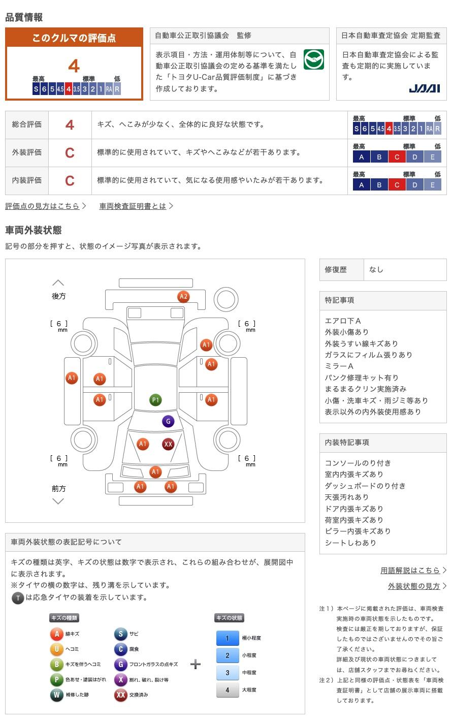 トヨタ認定車両検査員が正しく厳しく車両を検査、修復歴はもちろん小さな傷も正確にお伝えします。 72