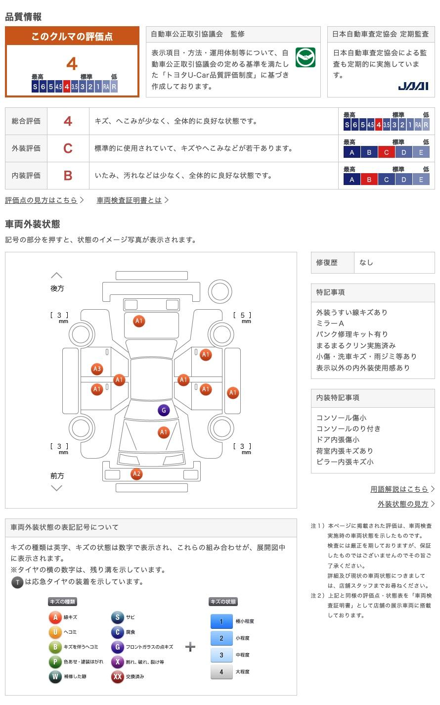 下記内容は保証対象外となります。ボディー内・外装部品。消耗部品。油脂類。通常の使用損耗あるいは経年変化により発生する現象。自動車機能に影響がないことが一般的に認められている現象(音・振動・操作感覚)等 |
