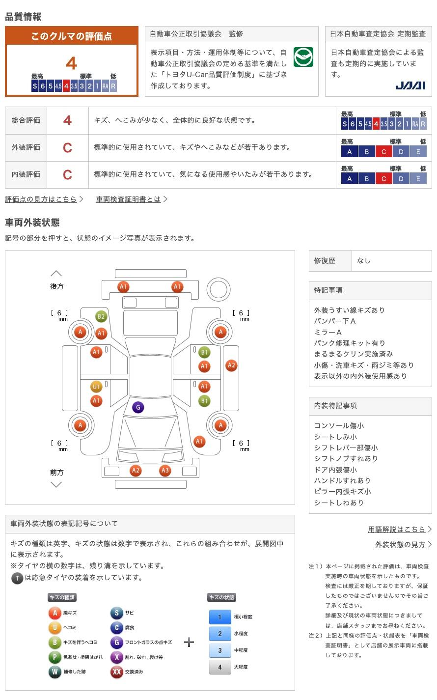 下記内容は保証対象外となります。ボディー内・外装部品。消耗部品。油脂類。通常の使用損耗あるいは経年変化により発生する現象。自動車機能に影響がないことが一般的に認められている現象(音・振動・操作感覚)等 |