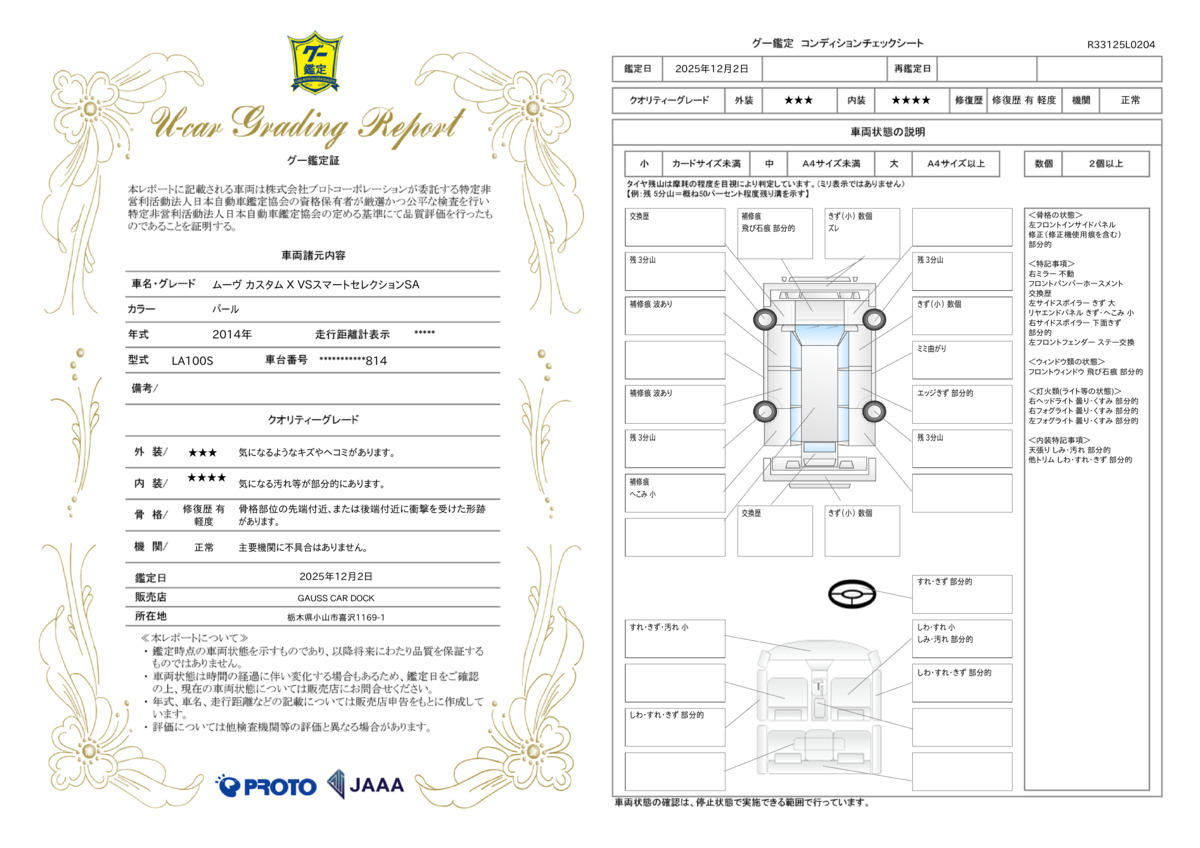 計50項目 保証費用は本体価格に含まれています。詳細については、販売店にご確認ください。12ヵ月&走行無制限の全国対応保証★24時間対応ロードサービスも付いています。予算に合わせてプランの変更も可能です |