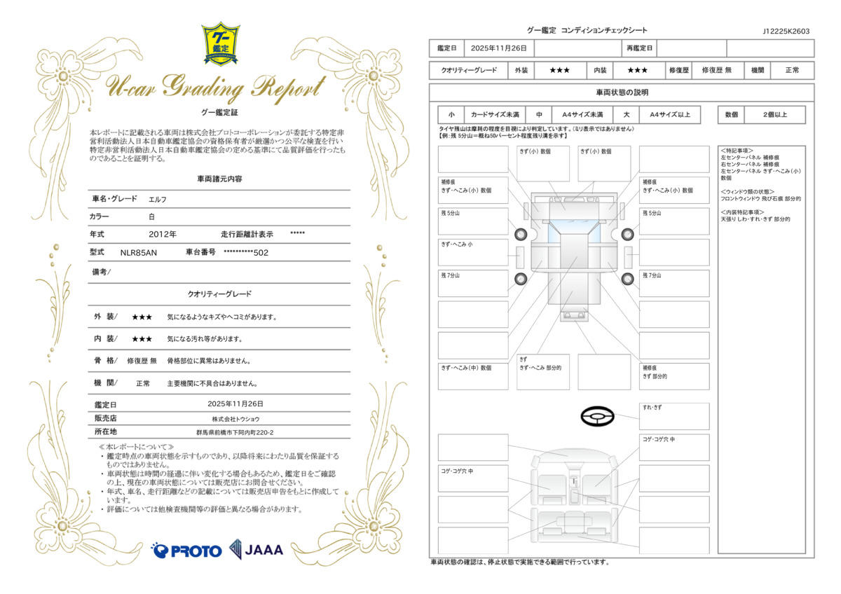 納車日から1ヶ月間または1,000キロのいずれか早い方の期間の保証がついています。架装部分は保証対象外となります。また業者販売の場合、保証は対象外となります。
