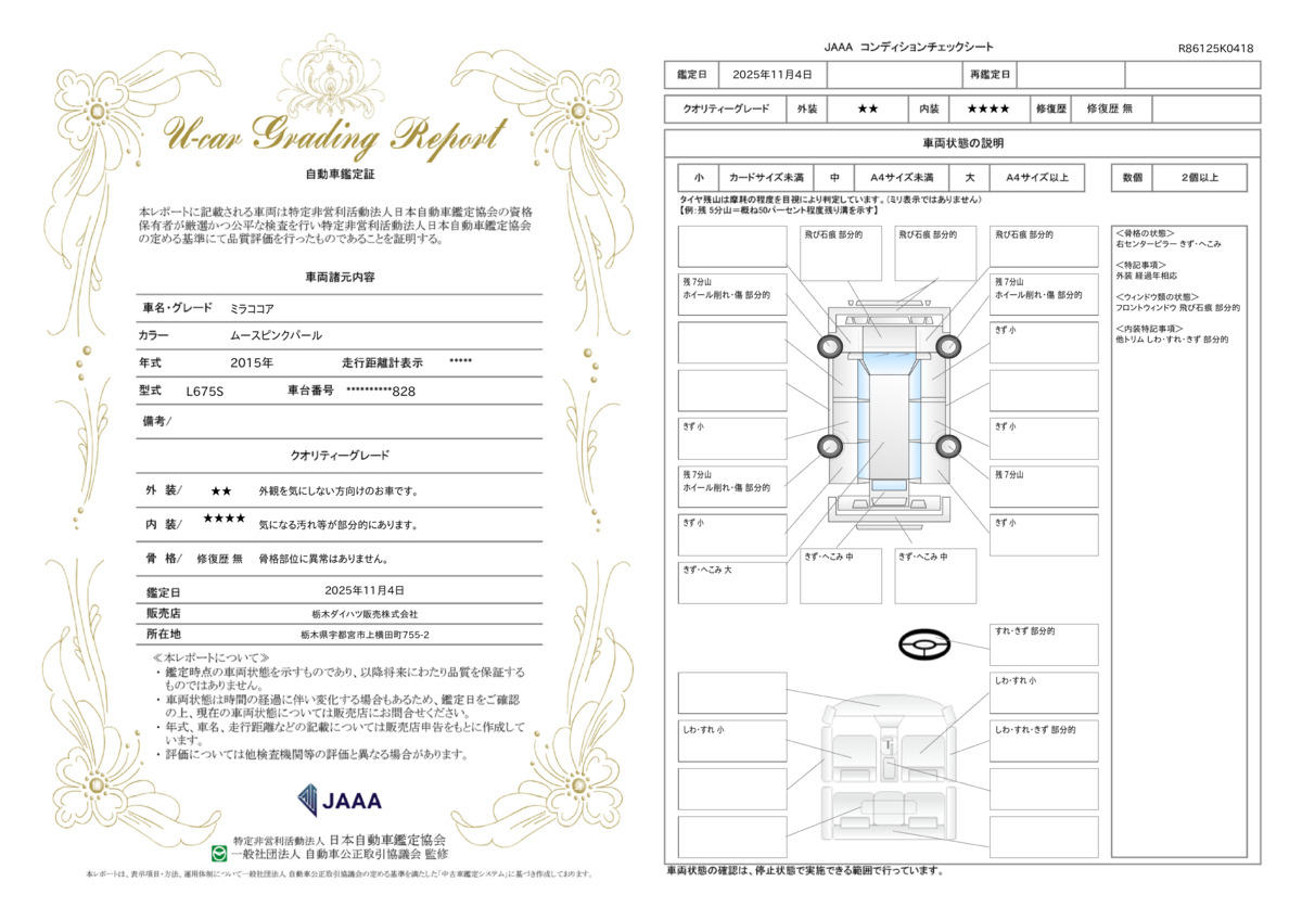 | 保証項目 | まごころ保証サービスは新車保証に準じた(消耗品、ゴム類部品、油脂類、内外装部品、経時変化などを除く)1年間・走行距離無制限の保証です。(新車保証期間中の車両は新車保証を継承して販売しております。) |