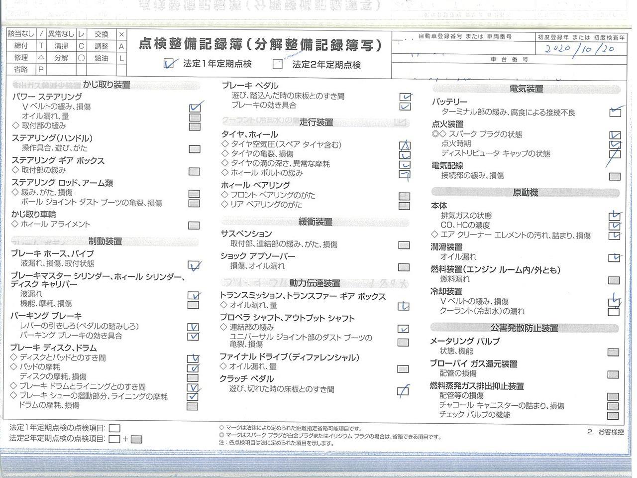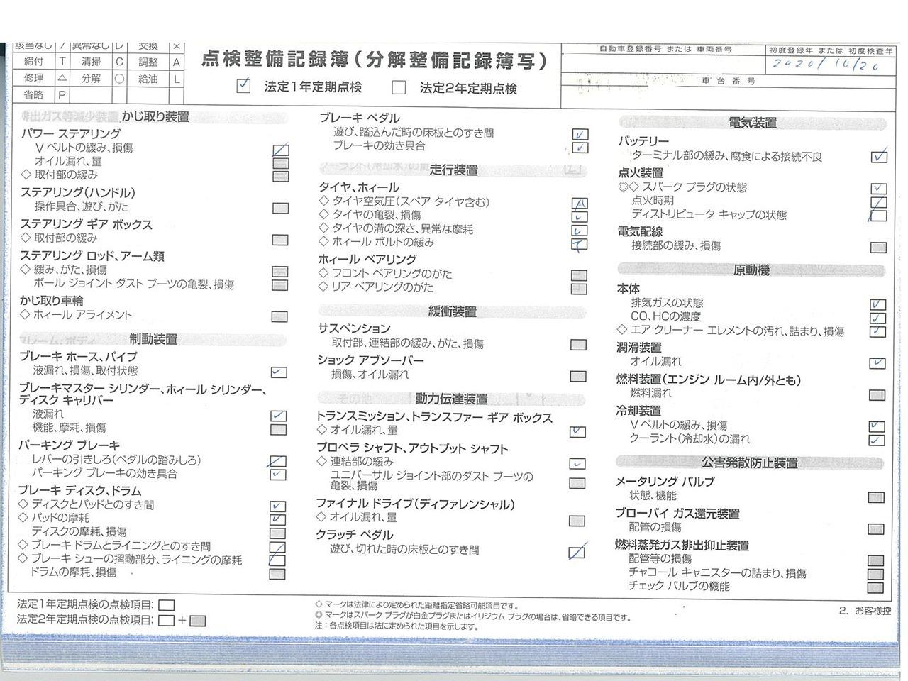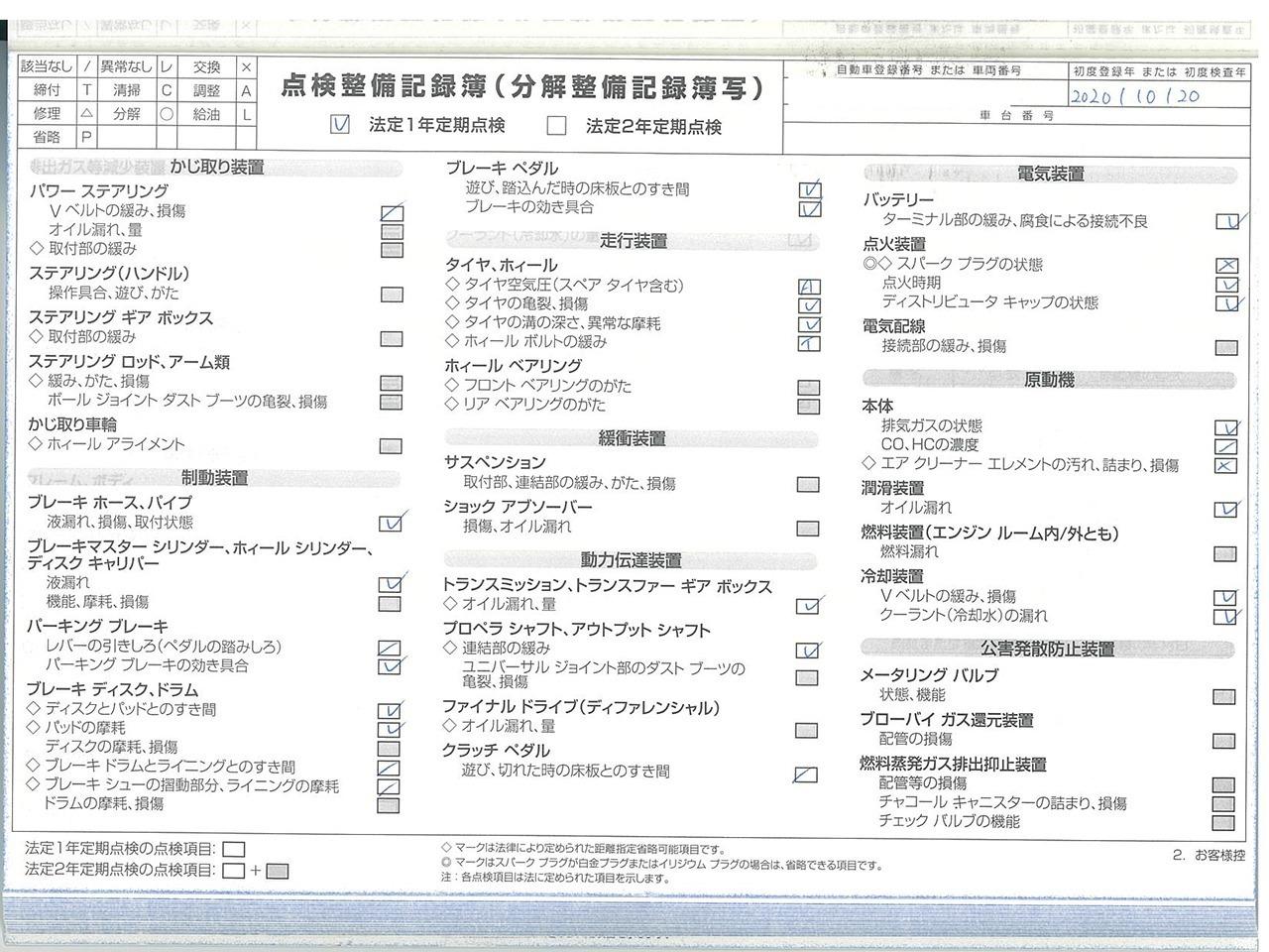 整備付 ご契約後からご納車までに認証工場にて法定点検を実施致します。点検費用は支払総額に含まれております。点検整備記録簿を発行致します。 |