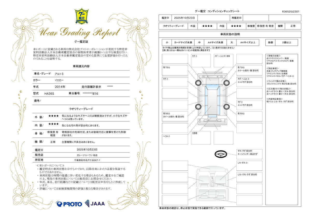 | 保証修理受付先 | ガレージユーワン各販売店 |
