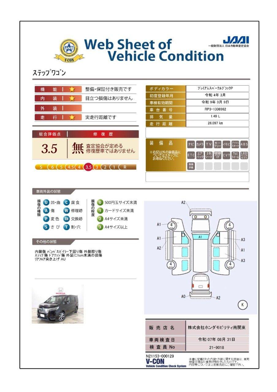 ステップワゴンスパーダ スパーダホンダセンシング ナビ 両側オートスライド LEDライト 0501543A30251207W005 22