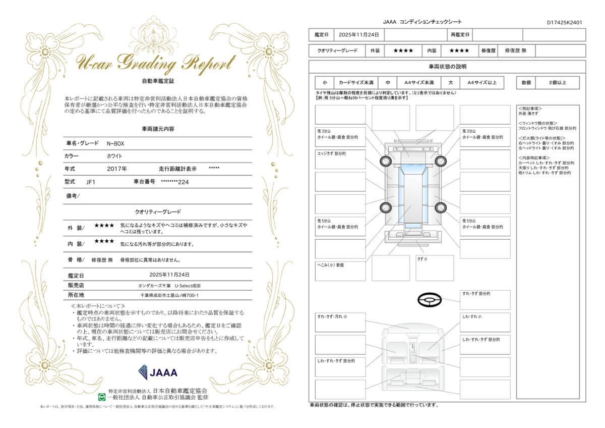 | 保証修理受付先 | 日本国内のHondaCars店、U−Select店であればどこでも修理対応が可能です。別途ホンダトータルケア(無料)にご登録頂ければ購入店舗までの無料ロードサービスもございます。 |