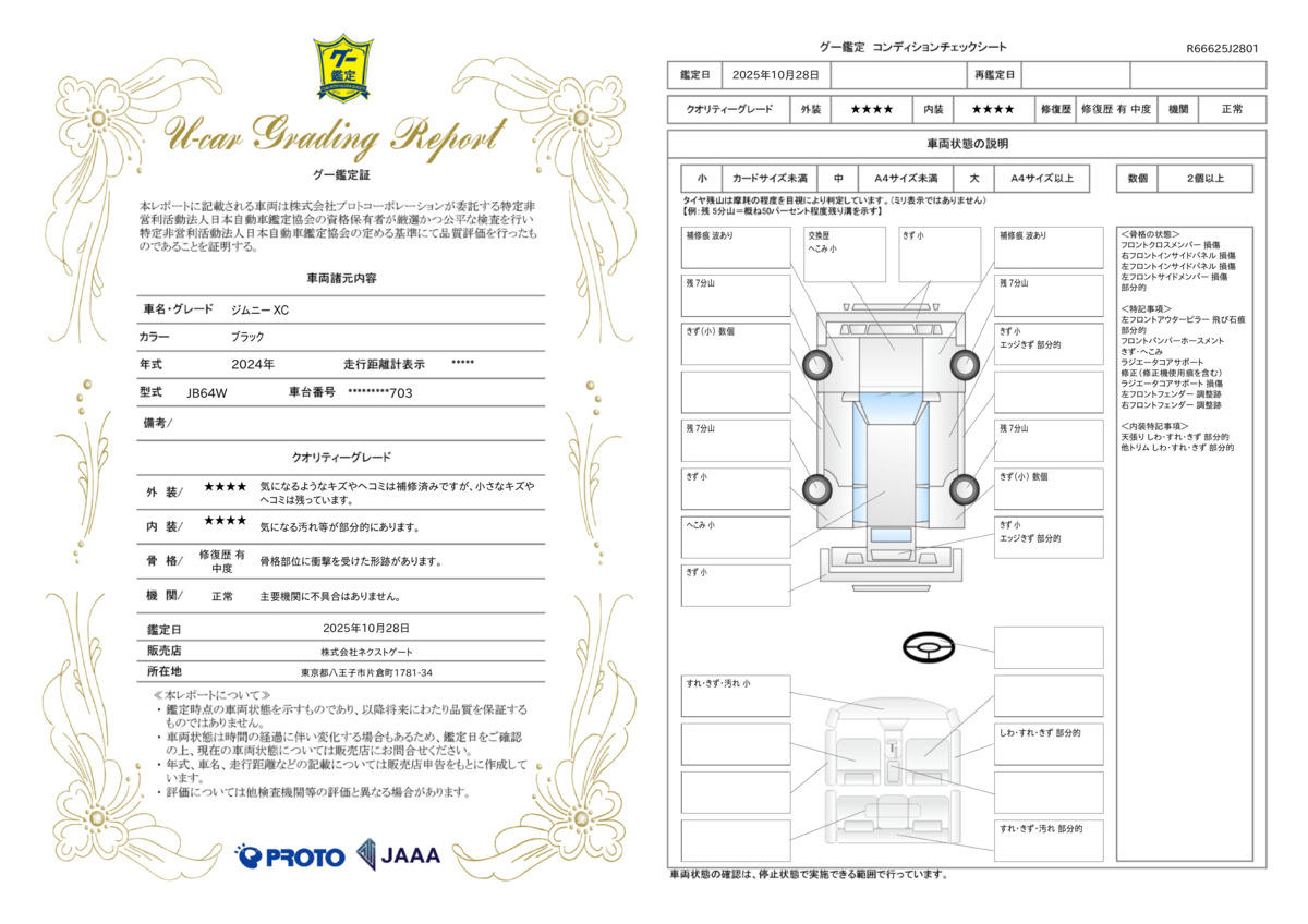 | 保証について | [保証付]:1ヶ月・1000km ※いずれか早い時期が保証適用の条件となります。 通常保証プランの他、別途全国対応・走行距離無制限・最長10年間の安心保証プランも御座います。保証範囲は最大約400項目以上にも及ぶパーツに対応。専任のサービスフロント対応24時間ロードサービス付。 |