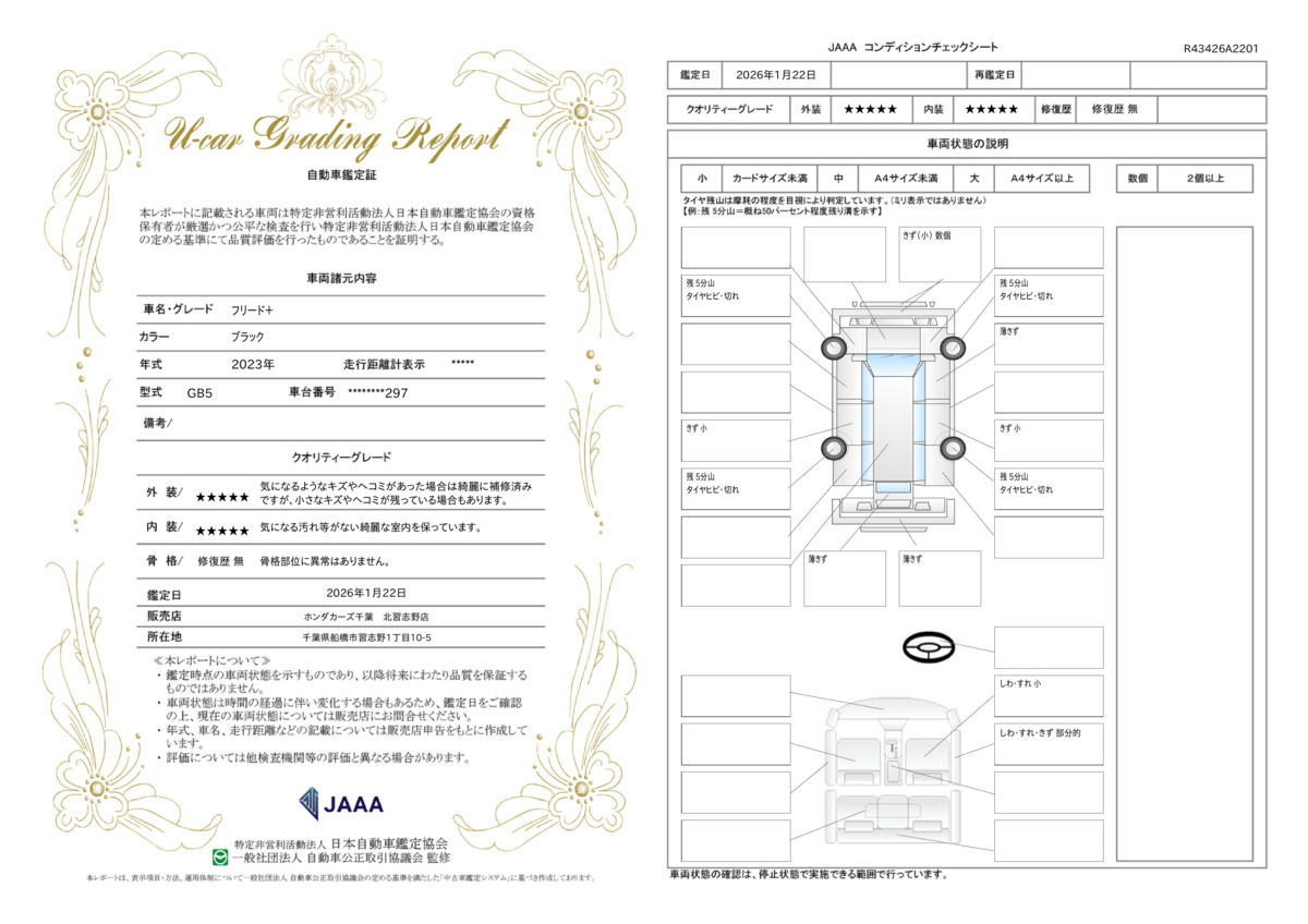 | 保証修理受付先 | 日本国内のHondaCars店、U−Select店であればどこでも修理対応が可能です。別途ホンダトータルケア(無料)にご登録頂ければ購入店舗までの無料ロードサービスもございます。 |