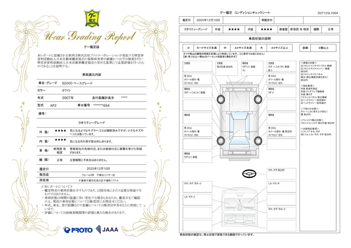 S2000 ベースグレード 6速MT VTECエンジン カロッツェリアオーディオ 0540448A30251206W001 25