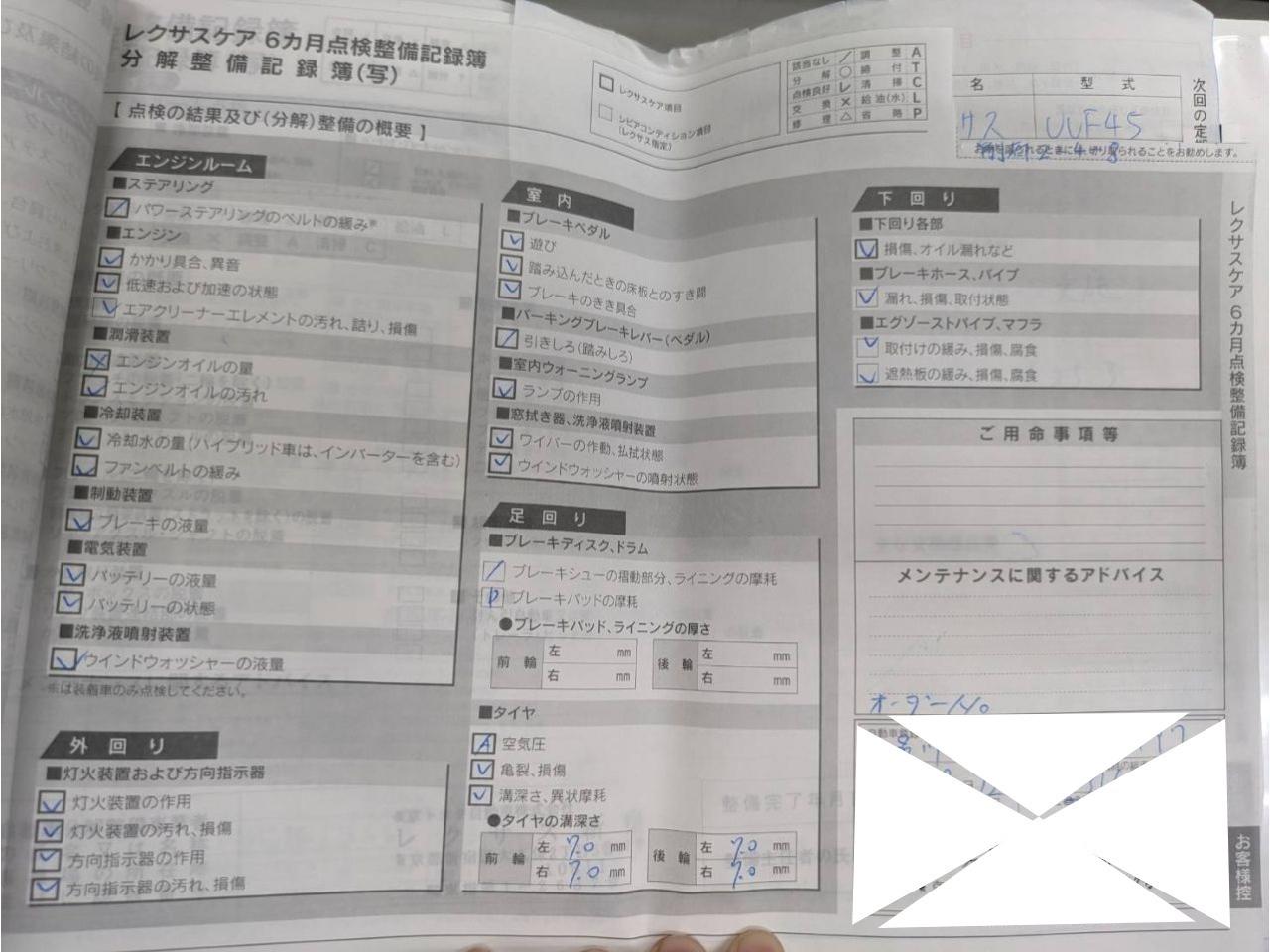 レクサスLS・RX専門整備士が徹底的に点検整備を行います!毎日同車種を見ているので、弱い部分もしっかり把握し対策します!