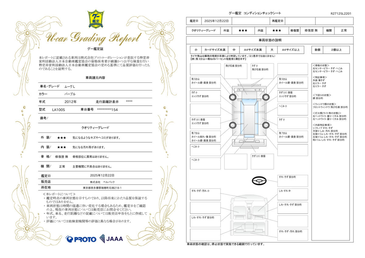 [保証付]:12ヶ月・走行無制限 エンジン・エアコンを中心とした1年間・走行無制限の保証です。全国のディーラーで保証が受けられます。全国どこでも10kmまでレッカー無料のロードサービス付。保証内容充実のプレミアム保証もございます。 |