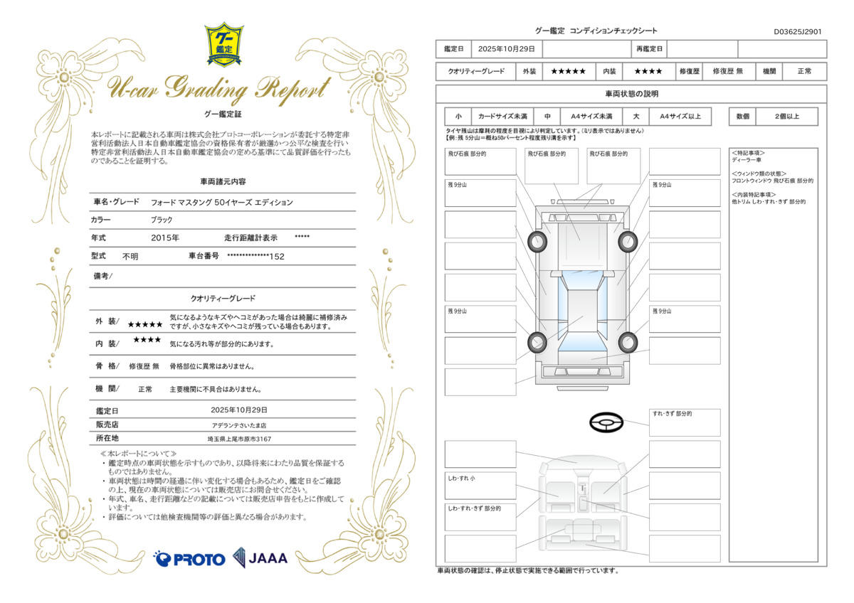 | 保証について | [保証付]:1ヶ月・1000km ※いずれか早い時期が保証適用の条件となります。 |